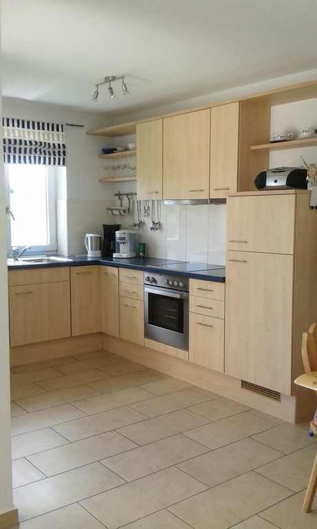 Die Küche mit anschließender Essecke ist komplett eingerichtet: Geschirrspüler, Kaffeemaschine, neuer Herd (Ceranfeld) mit Backofen, Dunstabzugshaube und natürlich sämtliches Geschirr und Töpfe ... eben alles was man für Spaghetti & Co braucht.